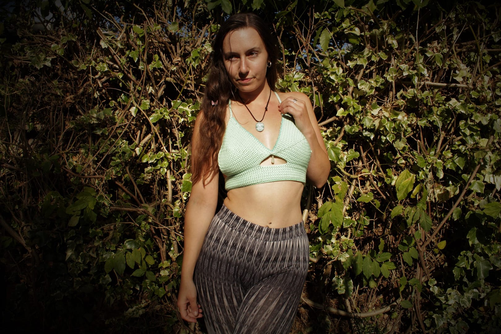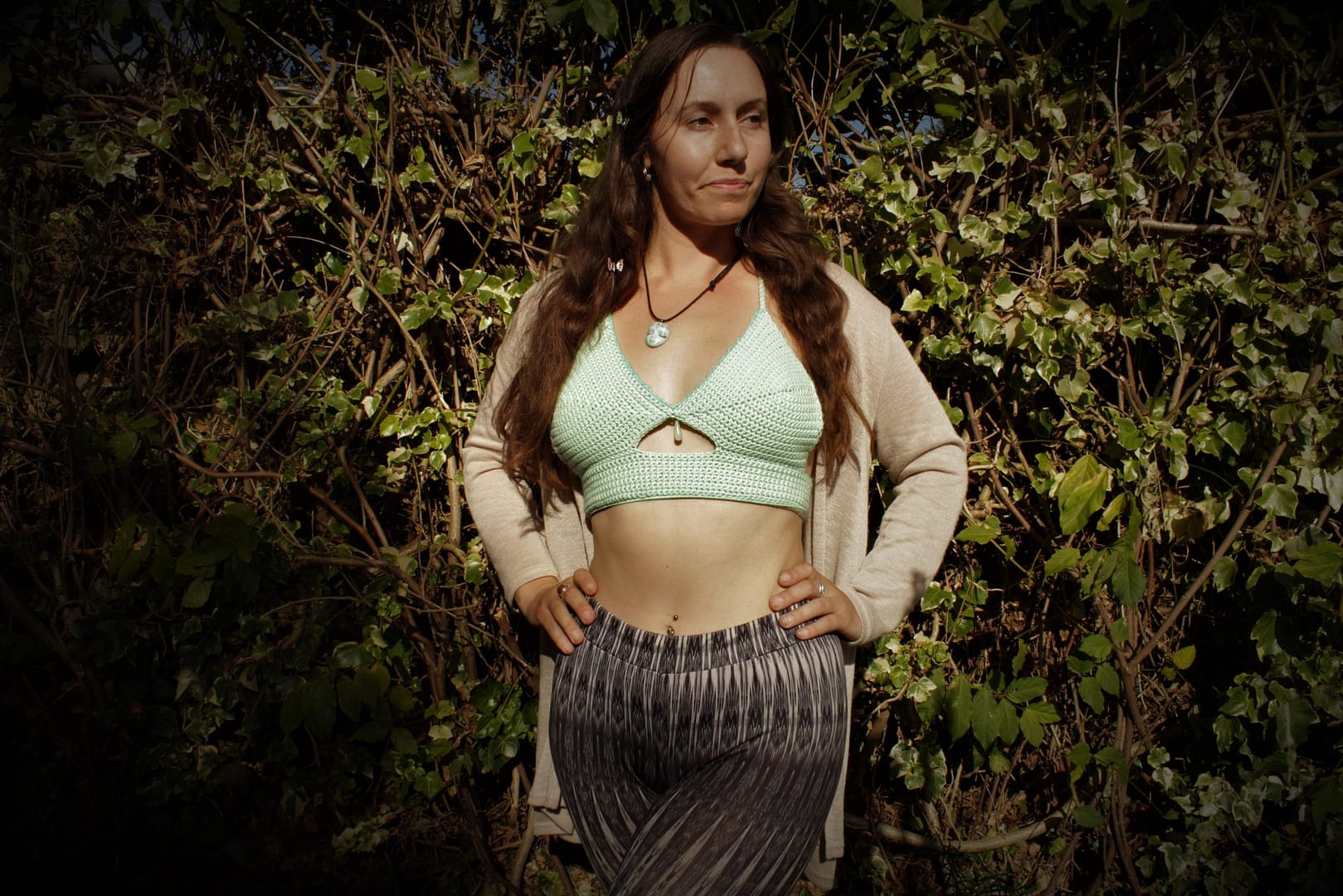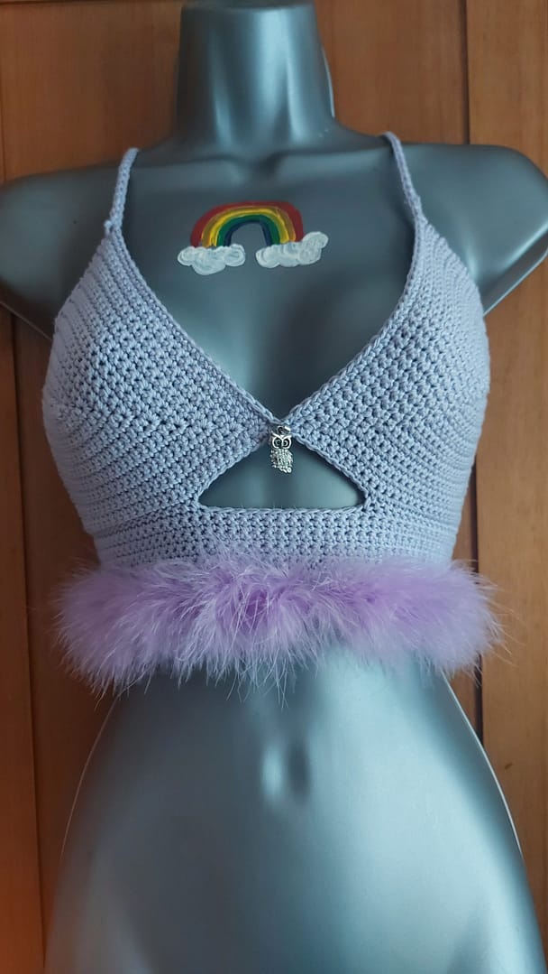 A flattering, simplistic styled bralette design to suit many body shapes. The pattern gives guidance to adding unique features such as hem, beads and charm adorned details.
